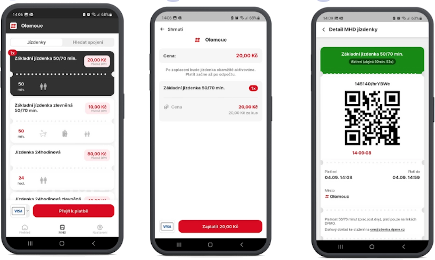 Jízdenku na MHD zakoupíte buď ve stánku nebo v automatech u zastávky. Nicméně doporučujeme si stáhnout aplikaci DPMO, ve které si můžete ihned jízdenku zakoupit.